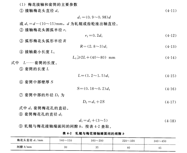 (2)梅花接軸材料 梅花接軸通常采用鑄鋼或鍛鋼,其材料性能為bs=5000~6000kg/cm2,∮=16%,梅花軸套一般用灰口鐵柱成,當(dāng)應(yīng)力較大時,個別采用鑄鋼。