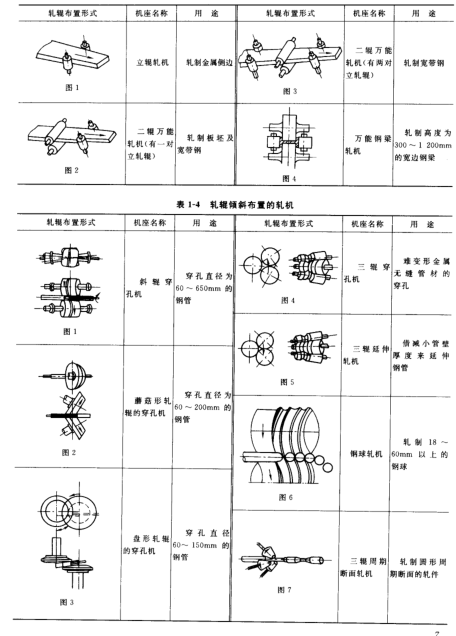 3.具有水平輥及立輾的軋機(jī)(見表 1-3 中圖2、圖3、圖4)4.軋輾傾斜布置的軋機(jī) (見表 1-4中圖 2、圖3、圖 4)用于橫向螺旋軋制,如鋼管穿孔機(jī)以及鋼管均整機(jī),都屬此類軋機(jī)。